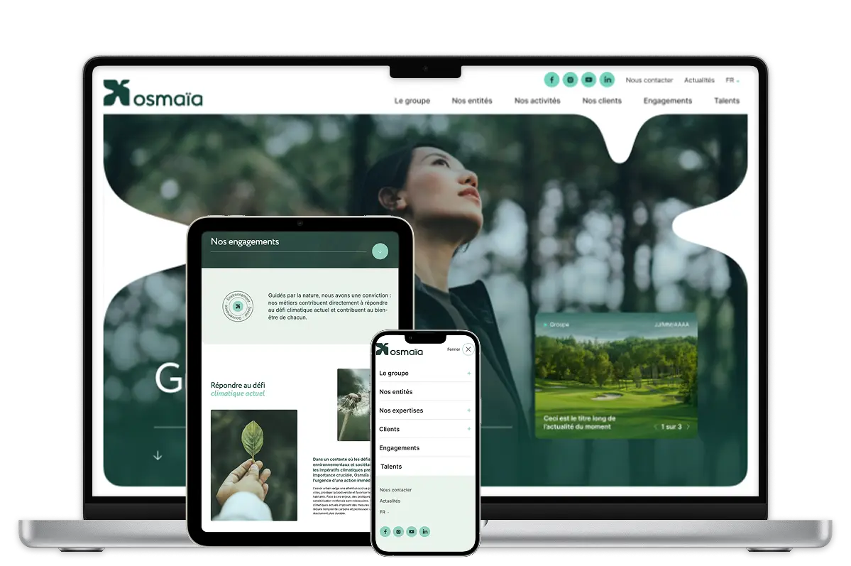 Osmaïa n’avait pas besoin d’un site. Il avait besoin d’une infrastructure. Né du rapprochement progressif de nombreuses enseignes régionales du paysage : espaces verts, terrain de sport, maîtrise de l’eau, création et entretien d’espaces extérieurs, le groupe comptait déjà plus d’une dizaine de marques, chacune avec son propre site, ses propres outils, ses propres habitudes. Une galaxie d’entités autonomes, sans lien entre elles. L’enjeu n’était pas de refaire des sites. C’était de faire fonctionner un groupe.